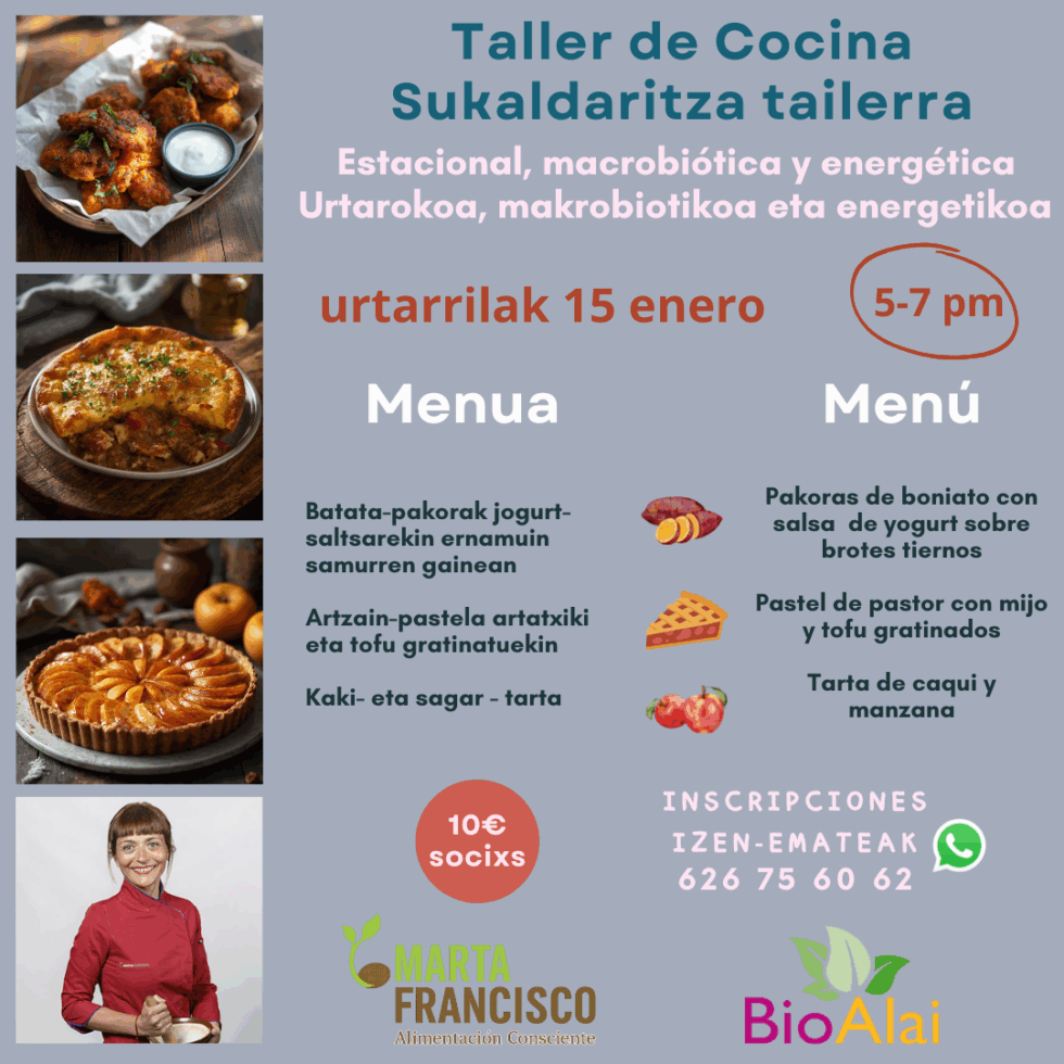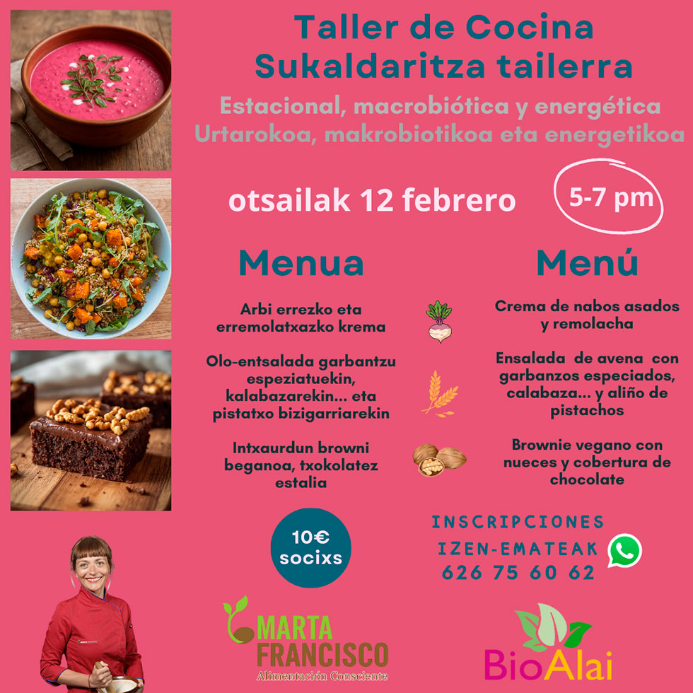 Desde hace ya más de 15 años BioAlai organiza mensualmente este curso de cocina energética y macrobiótica con productos locales y de la estación.